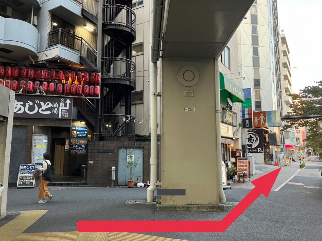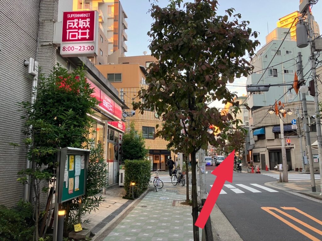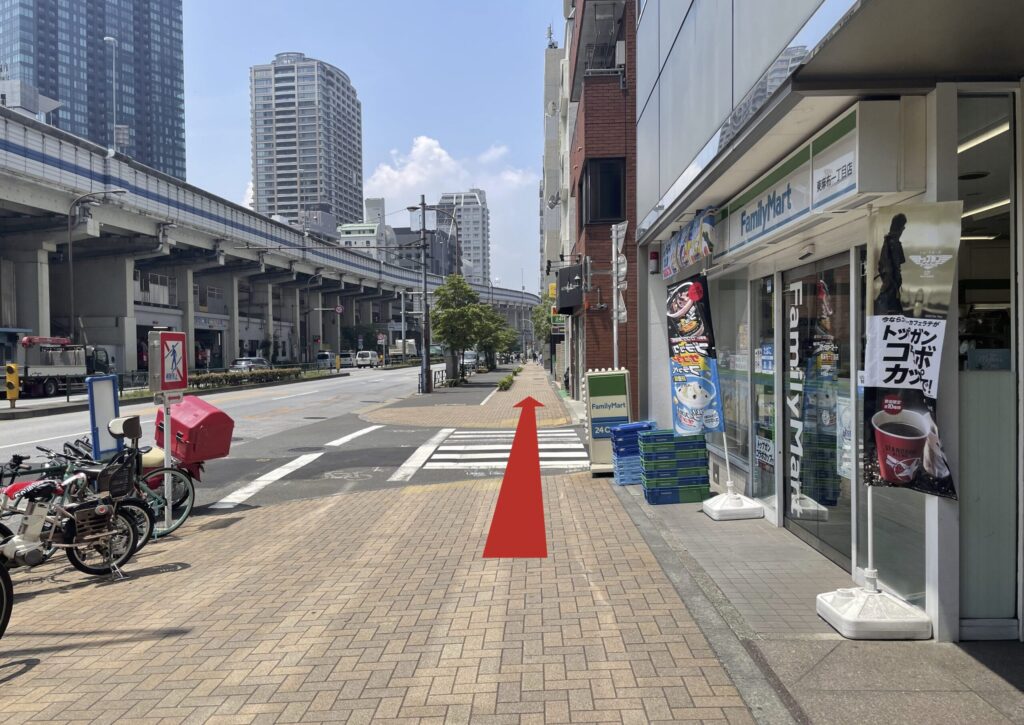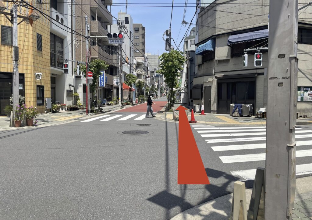 Family Mart角にある一つ目の道路を渡り。そのまま直進します。