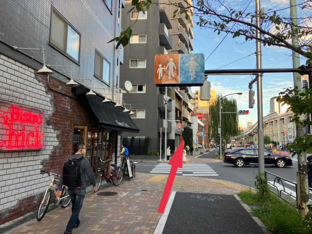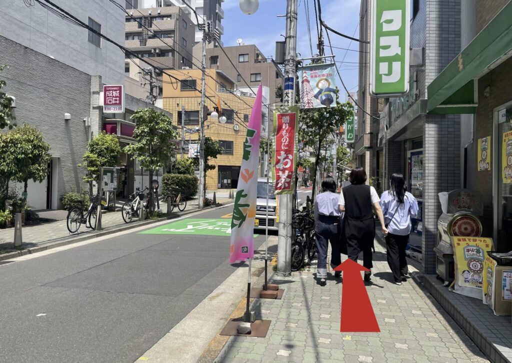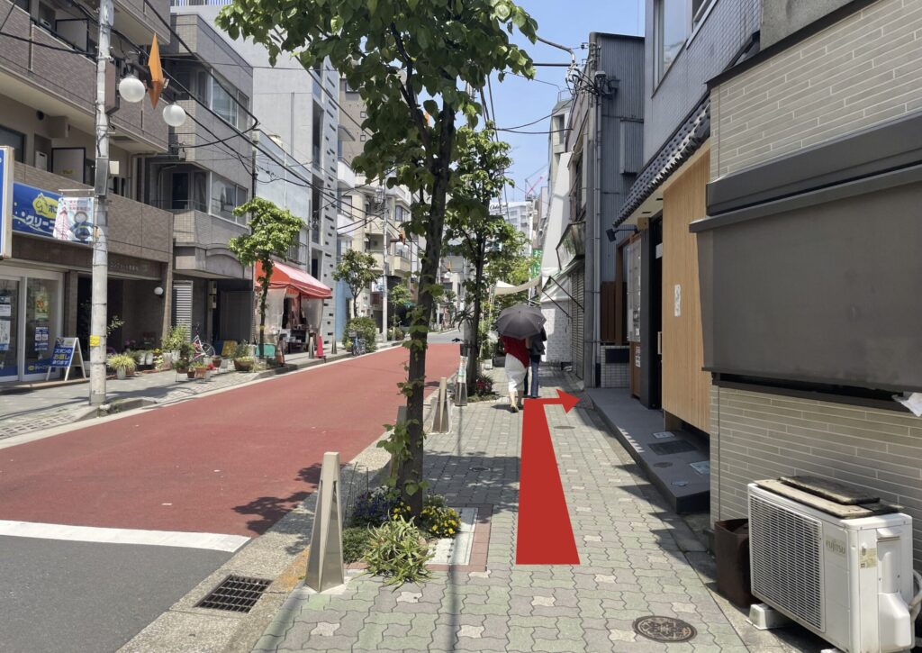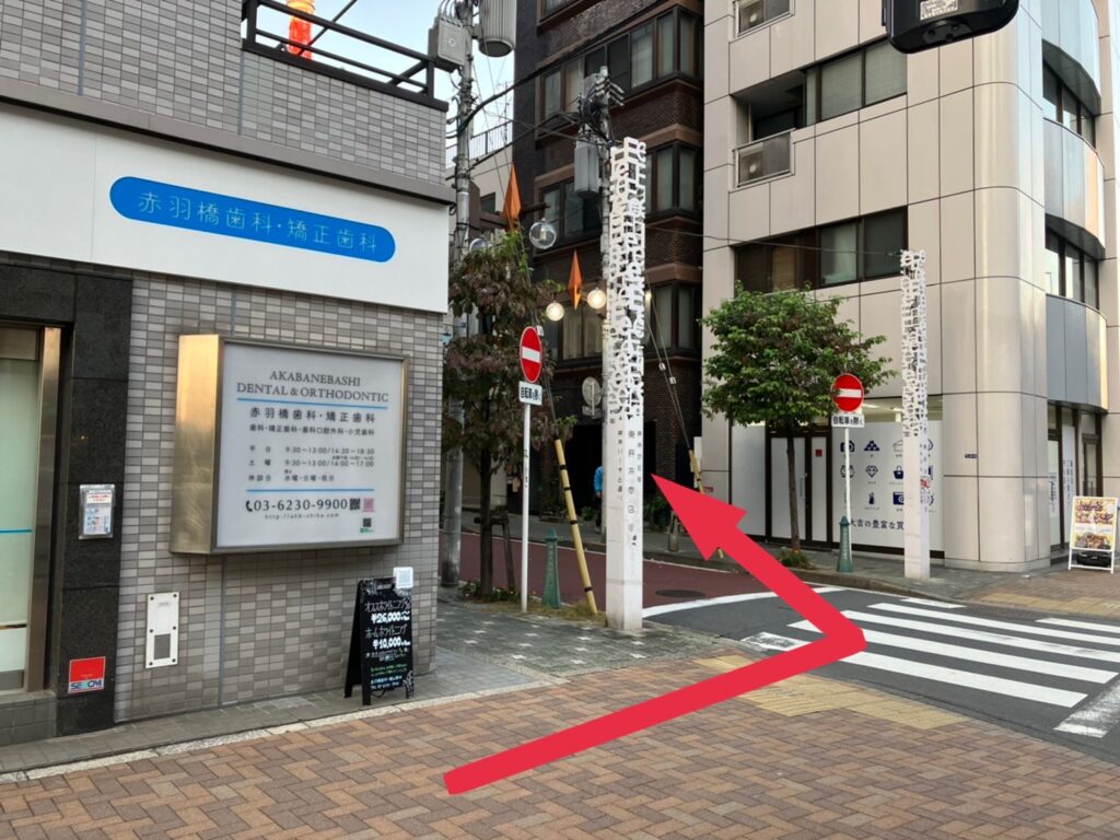 赤羽橋歯科を左手に曲がります。(東麻布商店街)