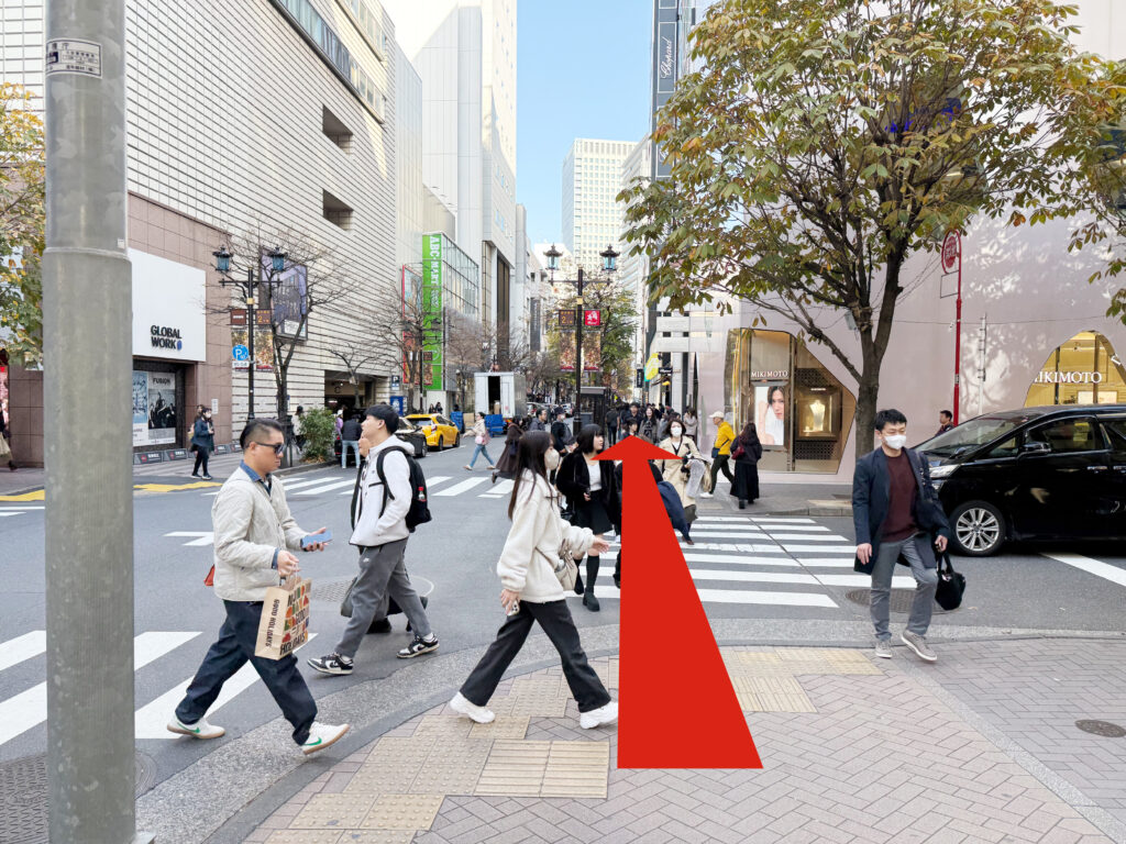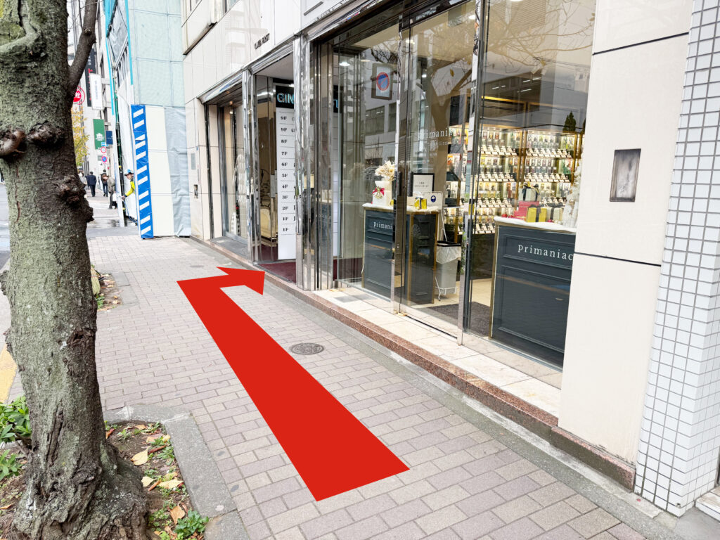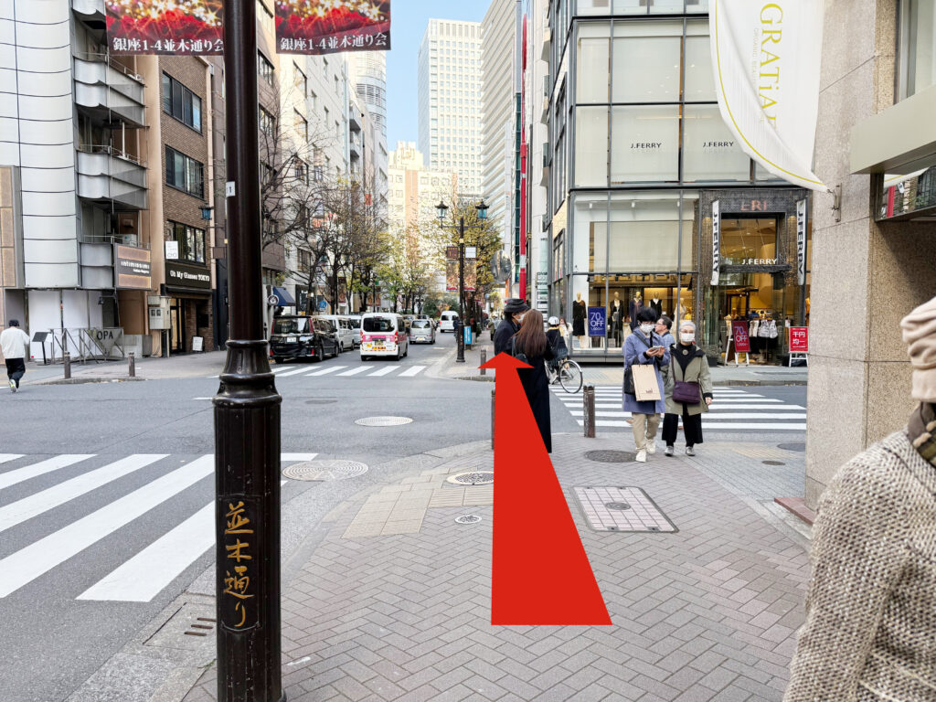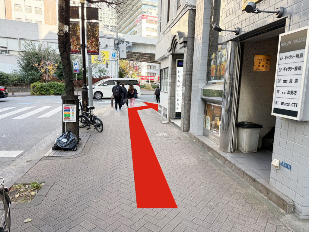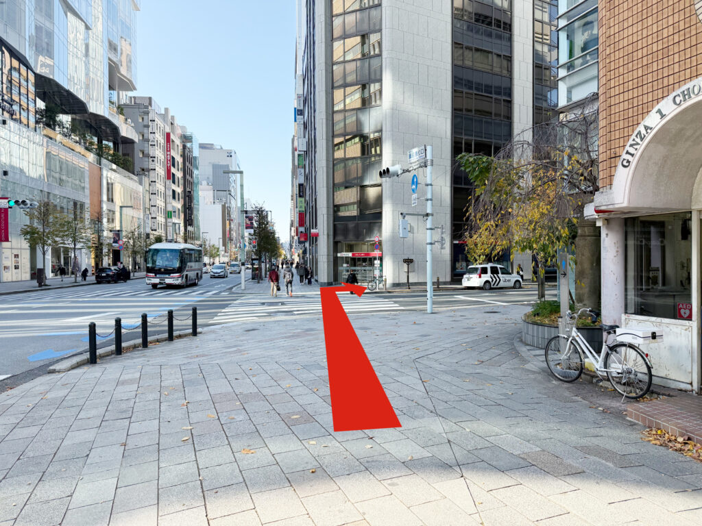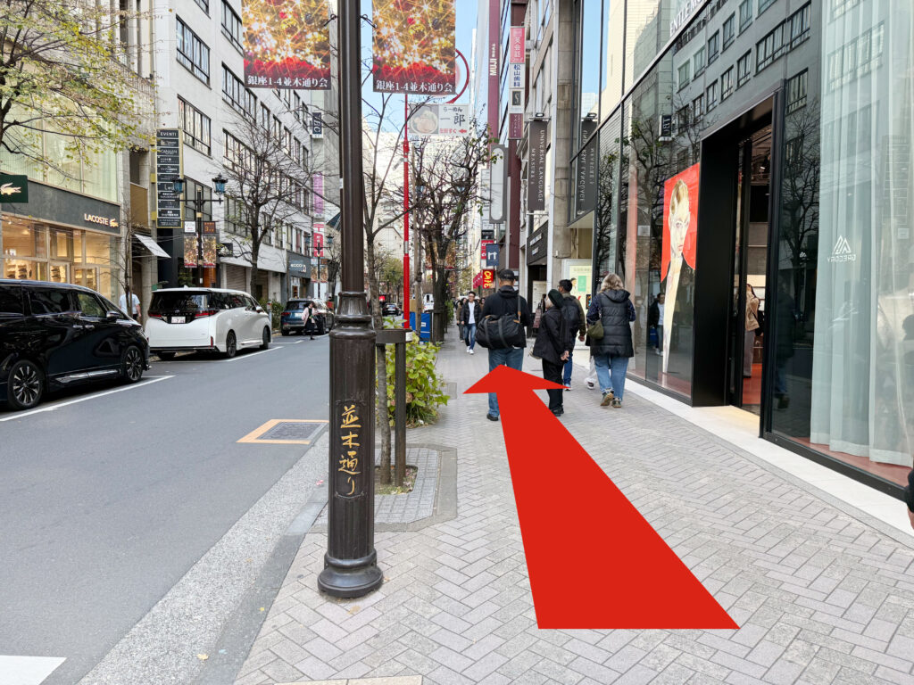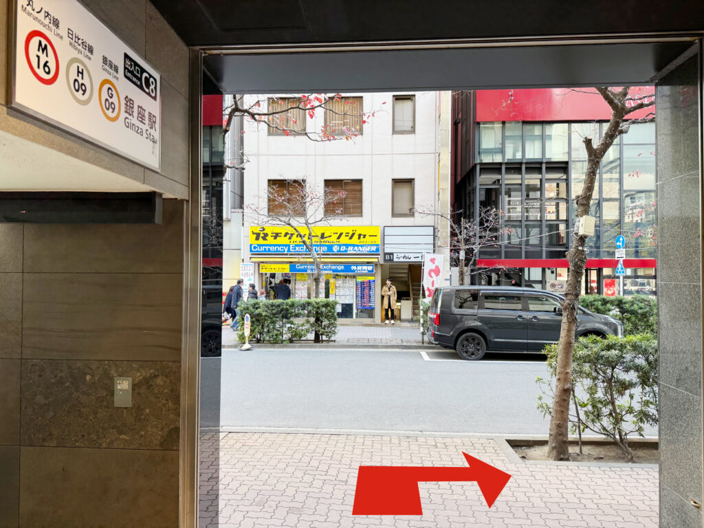 東京メトロ銀座駅、C8出口を出て右方向に進みます。