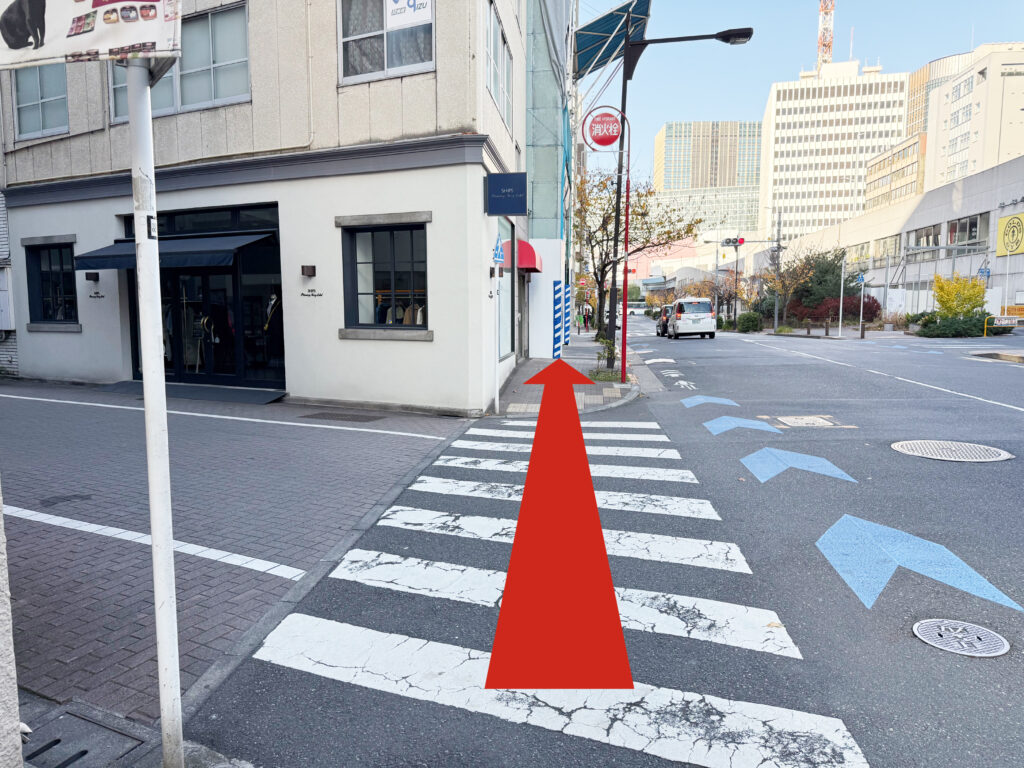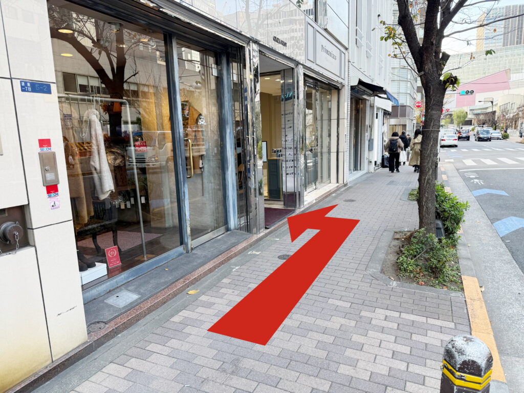 少し真っ直ぐ進むと左手にアパレルショップと香水ショップが見えてきますのでその間の入口