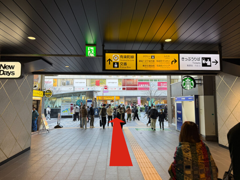 JR有楽町駅、京橋口の改札を出て右手に進みます。